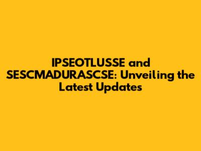 IPSEOTLUSSE And SESCMADURASCSE: Latest News And Insights