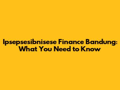 Ipsepsesibnisese Finance Bandung: What You Need To Know