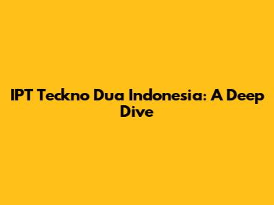 Hey guys, let's talk about IPT Teckno Dua Indonesia! You might be wondering, "What exactly is this?" Well, you're in the right place because we're about to dive deep and uncover everything you need to know. IPT Teckno Dua Indonesia, or simply IPT, is a company that's been making waves in the Indonesian tech scene. Understanding what they do, their impact, and their significance is crucial if you're keeping tabs on the digital landscape of Indonesia. So, buckle up, and let's get started. We'll go through their business, their history, and what makes them tick. This is designed to be your go-to guide, so whether you're a tech enthusiast, a potential investor, or just plain curious, you'll find something valuable here. We'll break down complex ideas into easy-to-understand chunks, ensuring everyone can grasp the essence of IPT and its role in the Indonesian economy. So, are you ready to learn all about IPT? Let's get this show on the road!