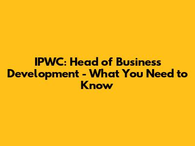 IPWC: Head Of Business Development - What You Need To Know