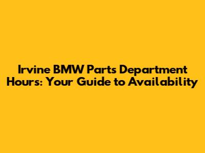 Hey there, BMW enthusiasts! Are you in Irvine, California, and in need of some genuine BMW parts? Maybe you're looking to upgrade your ride, perform some routine maintenance, or tackle a more involved repair. Whatever the reason, knowing the Irvine BMW Parts Department Hours is super important. It's like having the keys to the kingdom – or at least, the keys to getting your BMW running smoothly. This article is your go-to guide for everything you need to know about the parts department hours, ensuring you can get the parts you need when you need them. We'll delve into the typical operating hours, how to find the most up-to-date information, and even some insider tips to make your parts-buying experience a breeze. So, buckle up, and let's dive into the world of BMW parts in Irvine!