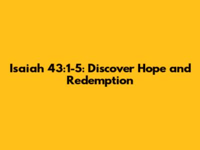 Isaiah 43:1-5: Discover Hope And Redemption