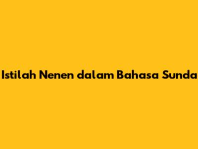 Istilah 'Nenen' Dalam Bahasa Sunda