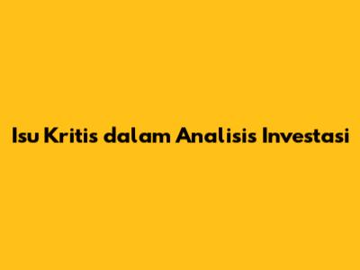 Isu Kritis Dalam Analisis Investasi