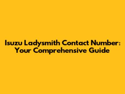 Isuzu Ladysmith: Find Contact Details & More
