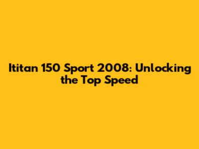 Ititan 150 Sport 2008: Unlocking The Top Speed