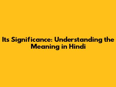 Its Significance: Understanding The Meaning In Hindi