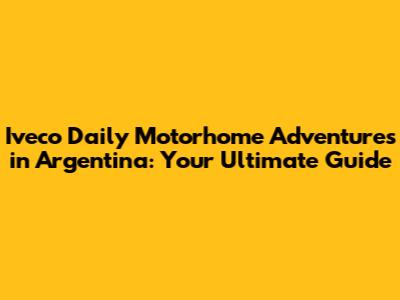 Hey guys! So, you're dreaming of hitting the open road in Argentina with an Iveco Daily motorhome? Awesome choice! Argentina is a land of stunning landscapes, vibrant culture, and endless opportunities for adventure. And the Iveco Daily? Well, it's a solid workhorse, perfect for turning into your home on wheels. But before you pack your bags and fire up the engine, let's dive into everything you need to know about navigating Argentina in your Iveco Daily motorhome, from preparation to the open road. This guide is all about helping you make the most of your trip, ensuring it's smooth, safe, and unforgettable. Let's get started!