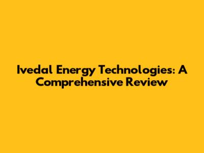 Ivedal Energy Technologies: A Comprehensive Review