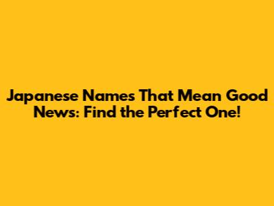 Japanese Names That Mean Good News: Find The Perfect One!
