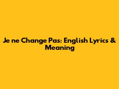 Je Ne Change Pas: English Lyrics & Meaning