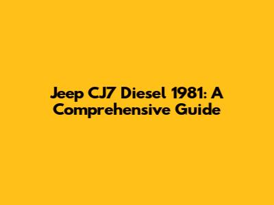 Jeep CJ7 Diesel 1981: Restoration & Maintenance Guide