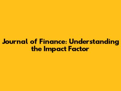 Journal Of Finance: Understanding The Impact Factor