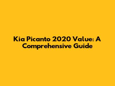 Kia Picanto 2020 Value: A Comprehensive Guide