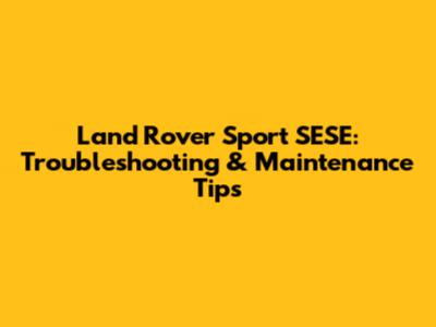 Land Rover Sport SESE: Troubleshooting & Maintenance Tips