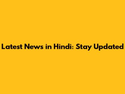 Latest News In Hindi: Stay Updated