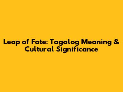 Leap Of Fate: Tagalog Meaning & Cultural Significance