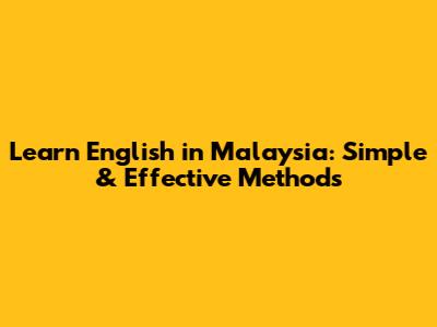 Learn English In Malaysia: Simple & Effective Methods