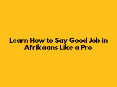 Learn How To Say 'Good Job' In Afrikaans Like A Pro