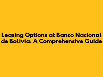 Leasing Options At Banco Nacional De Bolivia: A Comprehensive Guide