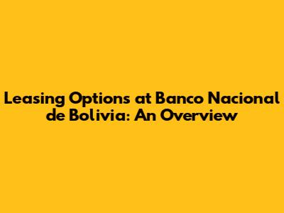 Leasing Options At Banco Nacional De Bolivia: An Overview