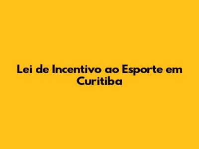 Lei De Incentivo Ao Esporte Em Curitiba