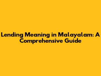 Lending Meaning In Malayalam: A Comprehensive Guide