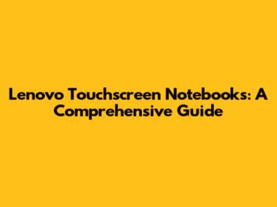 Lenovo Touchscreen Notebooks: A Comprehensive Guide