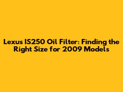 Lexus IS250 Oil Filter: Finding The Right Size For 2009 Models