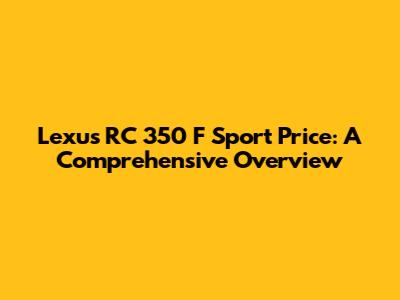 Lexus RC 350 F Sport Price: A Comprehensive Overview