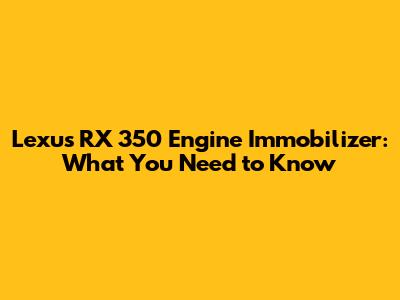 Lexus RX 350 Engine Immobilizer: What You Need To Know
