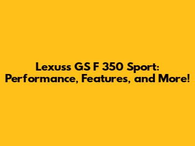 Lexuss GS F 350 Sport: Performance, Features, And More!