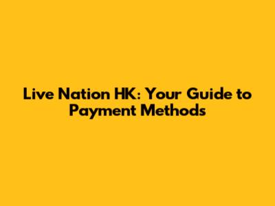 Live Nation HK: Your Guide To Payment Methods