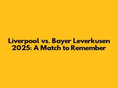 Liverpool Vs. Bayer Leverkusen 2025: A Match To Remember