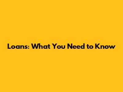 Loans: What You Need To Know