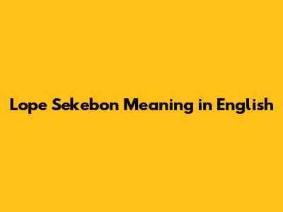 Lope Sekebon: Unraveling The Meaning In English