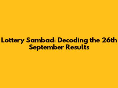 Hey everyone! Let's dive into the Lottery Sambad results from September 26th! We're going to break down the numbers, offer some analysis, and generally have a good time exploring what happened on that day. Whether you're a seasoned lottery player or just curious about the outcomes, this is the place to be. We'll explore the significance of the 26th September lottery and provide insights that will help you.