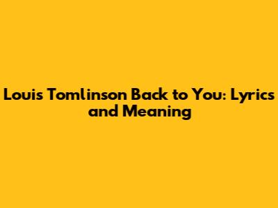 Louis Tomlinson Back To You: Lyrics And Meaning