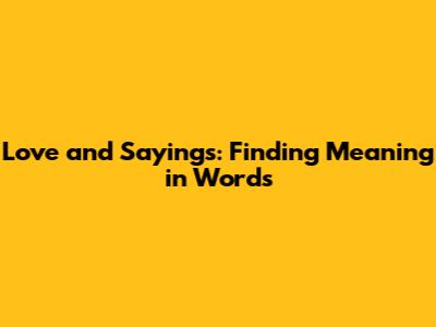 Love And Sayings: Finding Meaning In Words