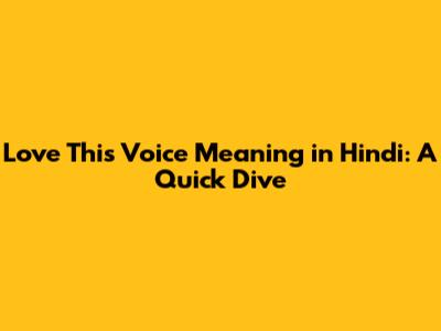 Love This Voice Meaning In Hindi: A Quick Dive