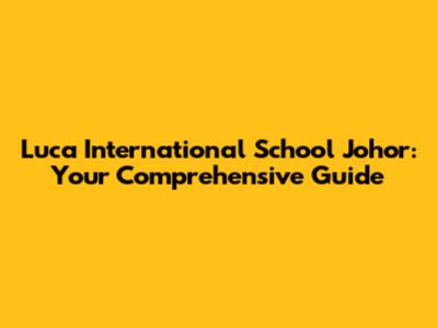 Luca International School Johor: Your Detailed Guide