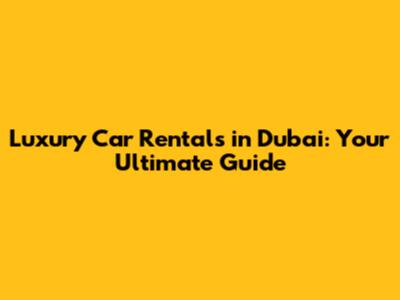 Luxury Car Rentals In Dubai: Your Ultimate Guide