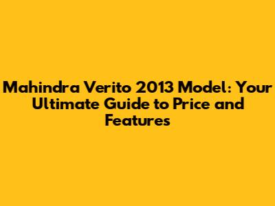 Mahindra Verito 2013: Price, Specs, And Buying Guide