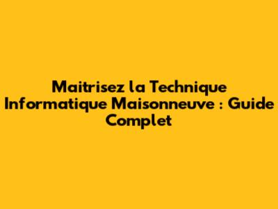 Les Meilleurs Conseils pour Apprendre et Maîtriser la Technique Informatique Maisonneuve