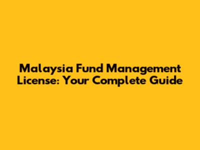 Malaysia Fund Management License: Your Complete Guide