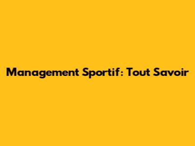 Qu'est-ce que le Management Sportif?