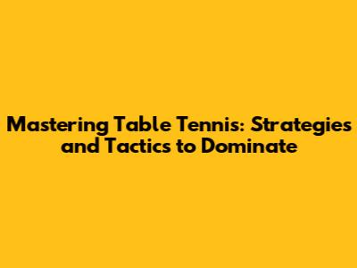 Mastering Table Tennis: Strategies And Tactics To Dominate