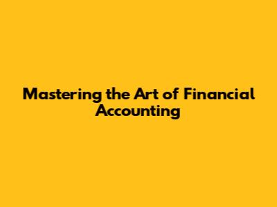 Mastering The Art Of Financial Accounting