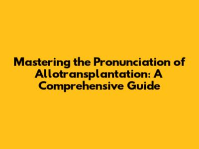 Mastering The Pronunciation Of Allotransplantation: A Comprehensive Guide