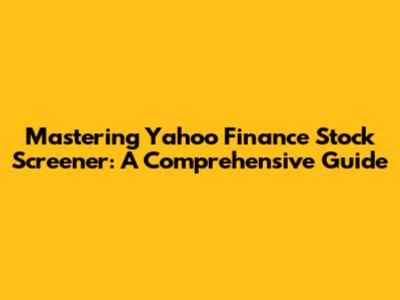 Mastering Yahoo Finance Stock Screener: A Comprehensive Guide